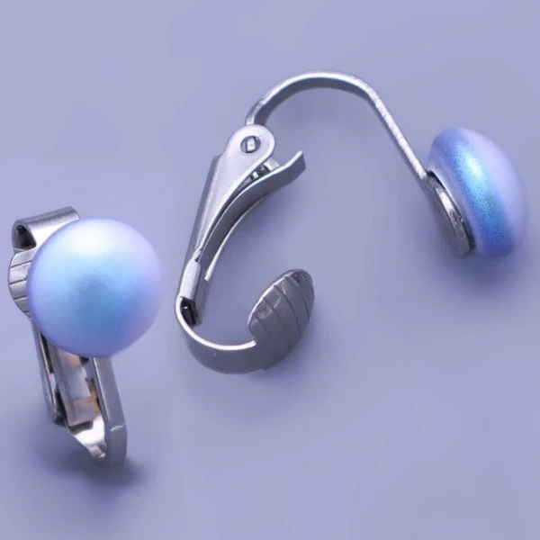 Náušnice z chirurgické oceli klipsy jsou zdobeny perlou Swarovski, které si můžete vybrat ze tří barev. White ( bílá perleť ), Bronze (perleťová hnědá ), Iridescent Light blue ( perleťová modrá ). Velikost perličky 8mm. Celková délka náušnic 18mm. 2190