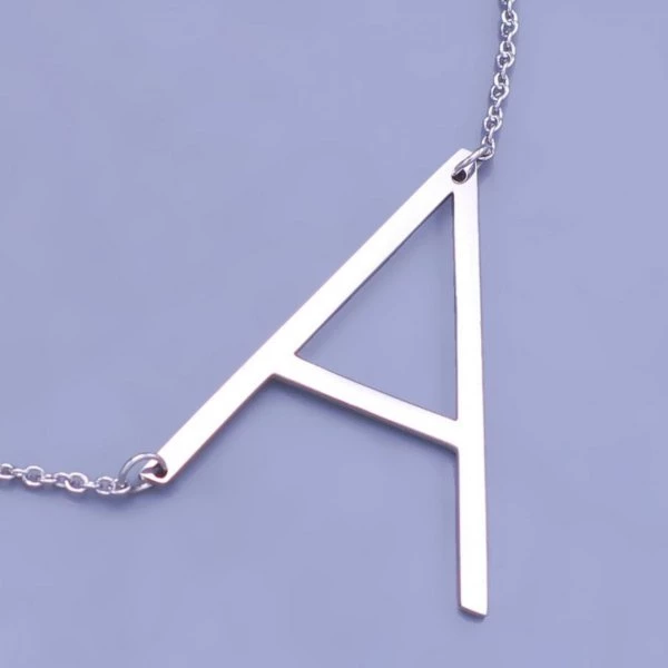 Písmenko A z leštěné chirurgické oceli je uchyceno na ocelovém řetízku o šířce 1,5mm s nastavitelnou délkou od 45cm do 50cm. Velikost písmena40x28mm. 2163