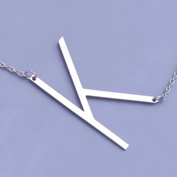 Písmenko K z leštěné chirurgické oceli je uchyceno na ocelovém řetízku o šířce 1,5mm s nastavitelnou délkou od 45cm do 50cm. Velikost písmena35x20mm. 2159