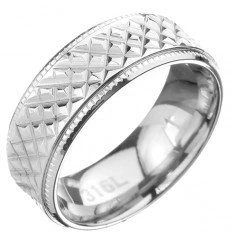 Ocelový prsten - obroučka se šikmým rýhováním a vroubkovaným lemem Velikost 67