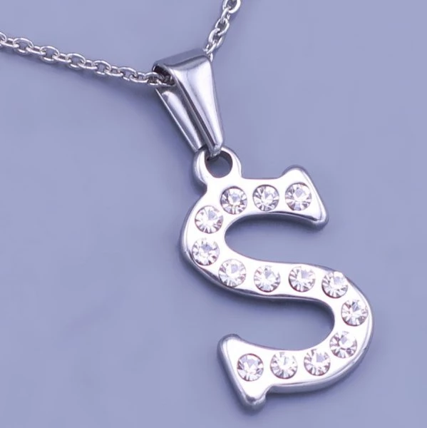 Přívěsek z leštěné chirurgické oceli písmeno S je zdobeno čirými zirkony. Velikost 17x13mm Součástí přívěsku je ocelový řetízek, který si můžete vybrat z šířek 1,2mm , 2mm. Délka na výběr od 40-45-50-55-60-65-70cm P027