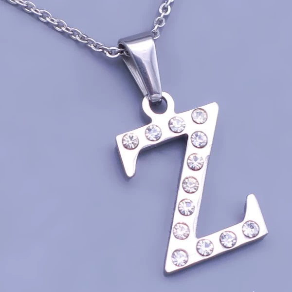 Přívěsek z leštěné chirurgické oceli písmeno Z je zdobeno čirými zirkony. Velikost 17x13mm Součástí přívěsku je ocelový řetízek, který si můžete vybrat z šířek 1,2mm , 2mm. Délka na výběr od 40-45-50-55-60-65-70cm P025