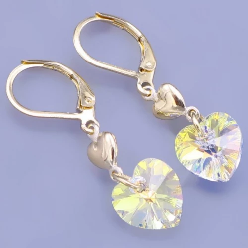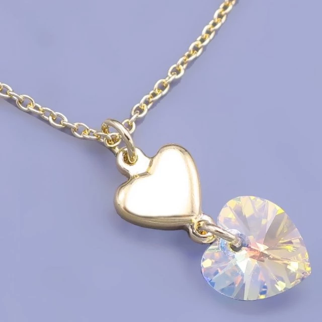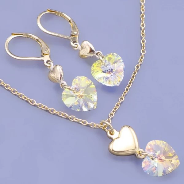 Souprava Swarovski srdíčka 10mm zlacená Crystal AB (měnící ) s řetízkem