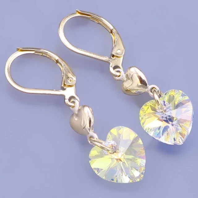 Souprava Swarovski srdíčka v barvě Crystal AB ( měnící ) je povrchově upravena zlacením 14Kar. Vhodná pro děti od 8 let . Náušnice : Srdíčka swarovski 10mm jsou zavěšeny na malém srdíčku a zapínání z chirurgické oceli na klapku , které je pohodlné pro nošení. Celková délka náušnic : 30mm Přívěsek srdíčko Swarovski o velikosti 10mm je zavěšeno na malém srdíčku 8mm a uchyceno na očkovém řetízku z chirurgické oceli o šířce 1mm ,který si můžete vybrat z délek od 40-45-50-55-60cm Souprava je uložena v originál dárkové krabičce . SZ31