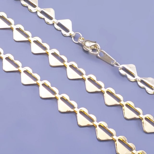 Řetízek z chirurgické oceli srdíčka jsou povrchově upraveny zlacením 14kar. v odstínu českého zlata bez niklu. Šířka 6mm. Délka na výběr od 40-45-50cm K řetízku nabízíme také náramek. 2084