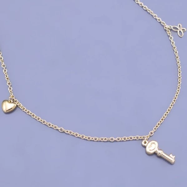 Řetízek z chirurgické oceli je povrchově upraven zlacením 14kar. v odstínu českého zlata bez niklu. Šířka řetízku 2mm. Velikost přívěsků 8mm, 10mm, 20mm. Délka nastavitelná od 45cm do 50cm. 2082