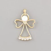 Zlacený Andělský přívěsek Andělíčka střížníčka se zdobenou sukýnkou bílými kamínky Swarovski Elements. Hlavička je osazena zirkonem o velikosti 6mm. V případě, že si budete přát hlavičku ozdobit zirkonem jiné barvy, napište si barvičku do objednávky. Povrchová úprava: Pozlaceno 14ti kar. zlatem. Dvouletá záruka.