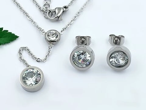 Souprava z chirurgické oceli řetízek s přívěskem a náušnice MATERIÁL Chirurgická ocel 316L GALVANICKÁ ÚPRAVA Stříbrná OBVOD NÁHRDELNÍKU 50 cm ROZMĚR PŘÍVĚSKU 1 cm ŠÍŘKA NÁUŠNICE 1 cm ZAPÍNÁNÍ NÁUŠNICE Puzeta