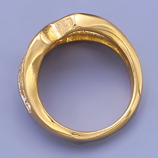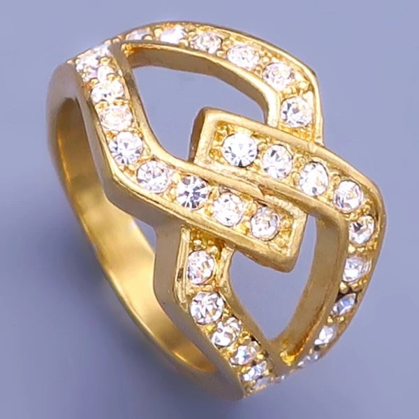 Dámský zlacený prstýnek z chirurgické oceli je zdobený čirými zirkony. Šířka vrchní části 14mm. Šířka spodní části prstýnku 3,5mm. Prstýnek nabízíme ve velikosti : 55 : vnitřní průměr 17,5mm 57 : vnitřní průměr 18mm P144