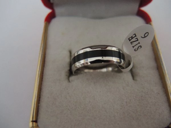 Prsten z chirurgické oceli zdobený černým proužkem Velikosti 51-65