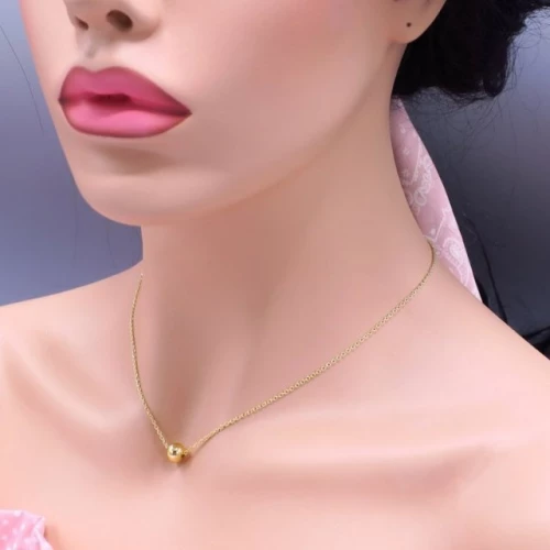 Kulička o velikosti 10mm je navlečena na řetízek z chirurgické oceli. Šířka řetízku 1,2mm. Délka na výběr od 40-45-50cm Povrchová úprava zlacení 14kar. V ČR v odstínu českého zlata. Bez niklu. 2370