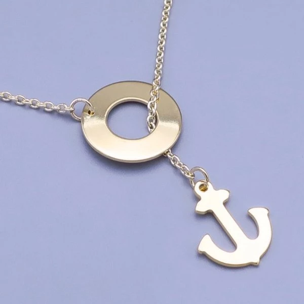 Řetízek z chirurgické oceli o šířce 1,2mm zdobí kolečko 15mm s protaženou kotvou 13mm. Délka 60cm. Povrchová úprava zlacení 14kar. v ČR v odstínu českého zlata bez niklu. 2418