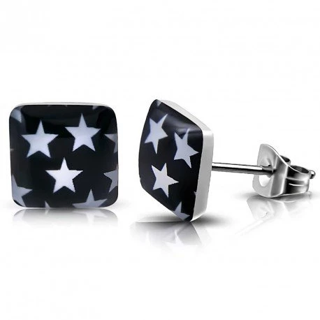 Náušnice ve tvaru čtverečku s hvězdičkami,zapínání na puzetku Velikost 7mm 5NE3703