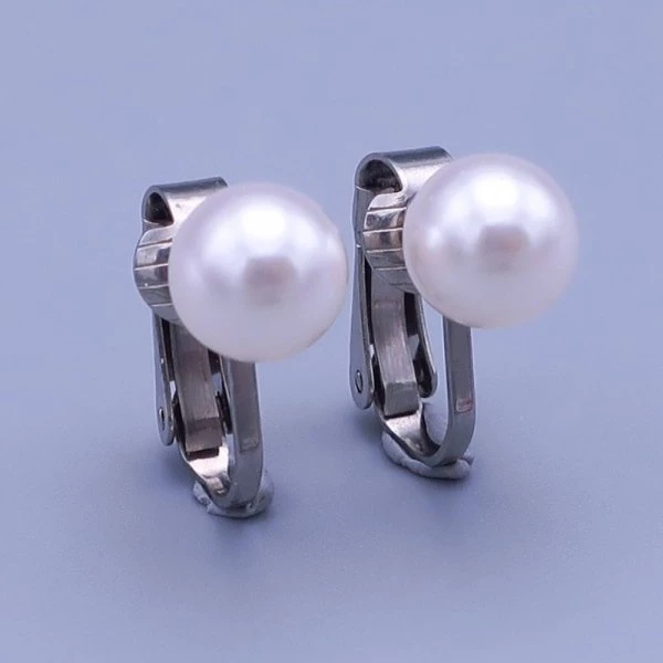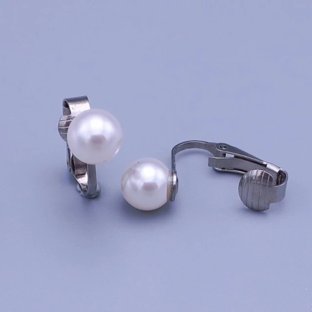 Náušnice z chirurgické oceli klipsy Swarovski perle 8mm White