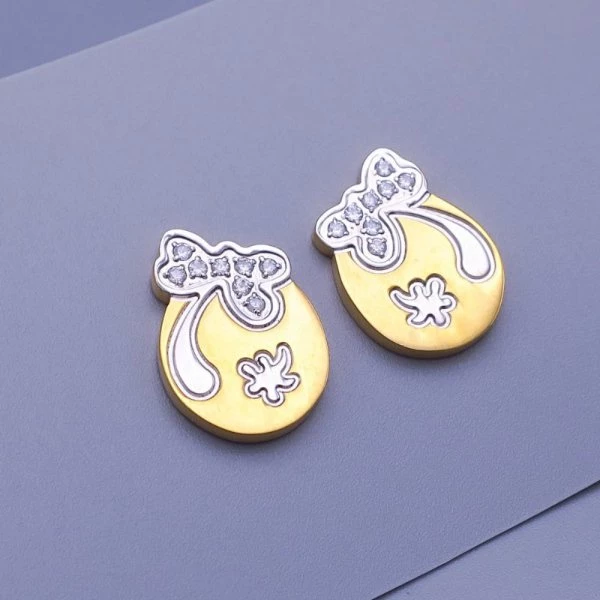 Náušnice z chirurgické oceli jsou povrchově upraveny zlacením a zdobené čirými zirkony. Velikost 15x13mm Zapínání na puzetu. Chirurgická ocel je vhodná pro alergiky na běžné kovy. 295
