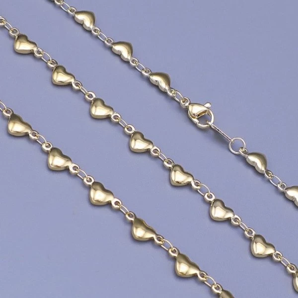 Řetízek z chirurgické oceli složený z oboustranných srdíček o velikosti 5mm je povrchově upravený zlacením 14Kar.Síla zlacení 3mikrony. Zlacení je opatřeno lakem ,který jej chrání a prodlužuje krásný lesklý vzhled. Délka : Na výběr z variant 45cm ,50 cm . K řetízku nabízíme také náramek a náramek na kotník. RZ068
