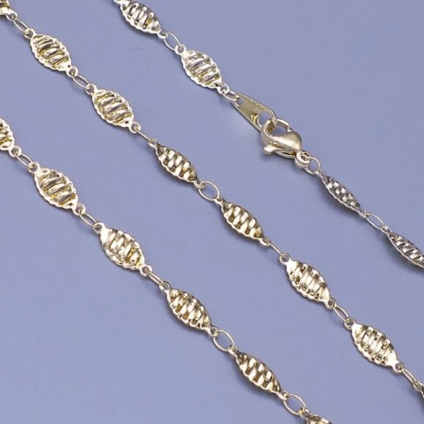 Dámský řetízek z chirurgické oceli složený z oválků o velikosti 10x5mm je povrchově upravený zlacením 14Kar.Síla zlacení 3mikrony. Zlacení je opatřeno lakem ,který jej chrání a prodlužuje krásný lesklý vzhled. Zlaceno v ČR v odstínu českého zlata. Šířka 5mm Délka : Na výběr z variant 40cm, 45cm, 50 cm . K řetízku nabízíme také náramek a náramek na kotník. RZ067