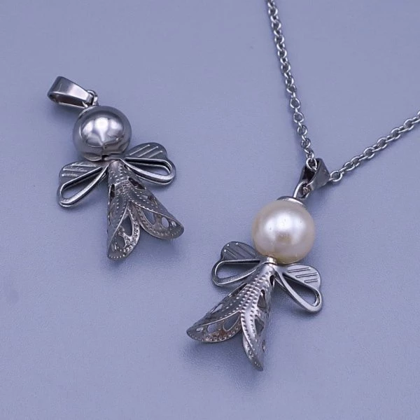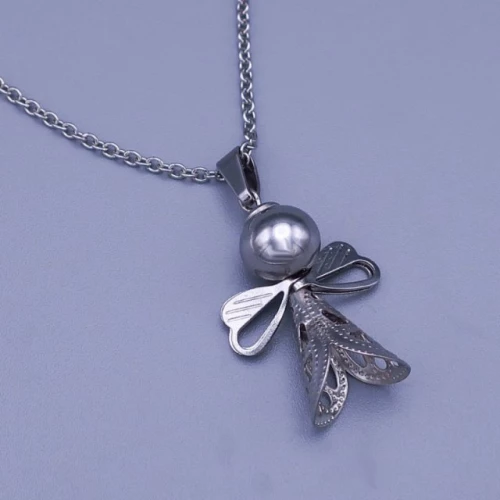 Přívěsek z leštěné chirurgické oceli 3D andělíček, který si můžete vybrat ze dvou variant : se Swarovski perličkou 8mm , ocelovou kuličkou. Velikost přívěsku 23x17mm Přívěsek je zavěšen na řetízku z chirurgické oceli 2mm. Délka na výběr od 40-45-50-55-60-65-70cm Chirurgická ocel je vhodná pro alergiky na běžné kovy. 1233