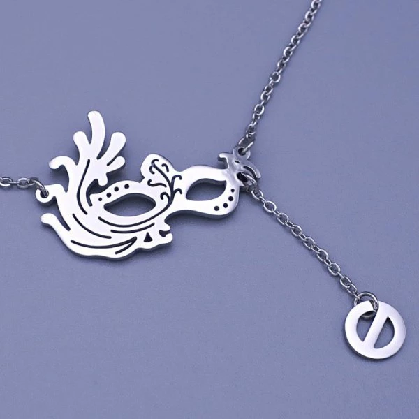 Přívěsek z leštěné chirurgické oceli divadelní maska. Velikost 30x20mm. Přívěsek je zavěšen na řetízku z chirurgické oceli o šířce 1mm, Délka nastavitelná od 45cm do 50cm. Chirurgická ocel je vhodná pro alergiky na běžné kovy. 5538