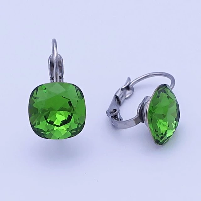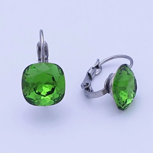 Náušnice z chirurgické oceli zdobí krystal swarovski v krásné barvě fern green ( zelená ) s výrazným brusem. Velikost krystalu 10mm. Pohodlné zapínání na klapku. Celková délka náušnic se zapínáním 18mm. 1179