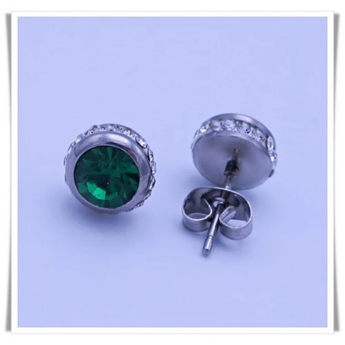 Puzetové náušnice z chirurgické oceli se zirkony esmerald