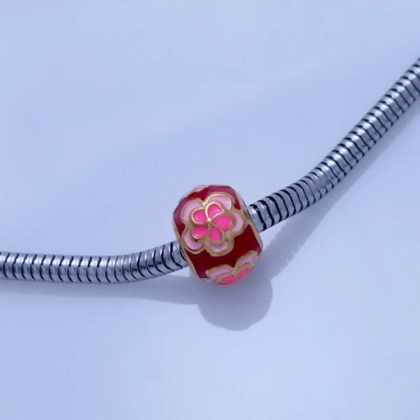 Zlacený korálek z chirurgické oceli s barevným zdobením. Šířka 10mm Vnitřní průměr průvleku 4mm. K041