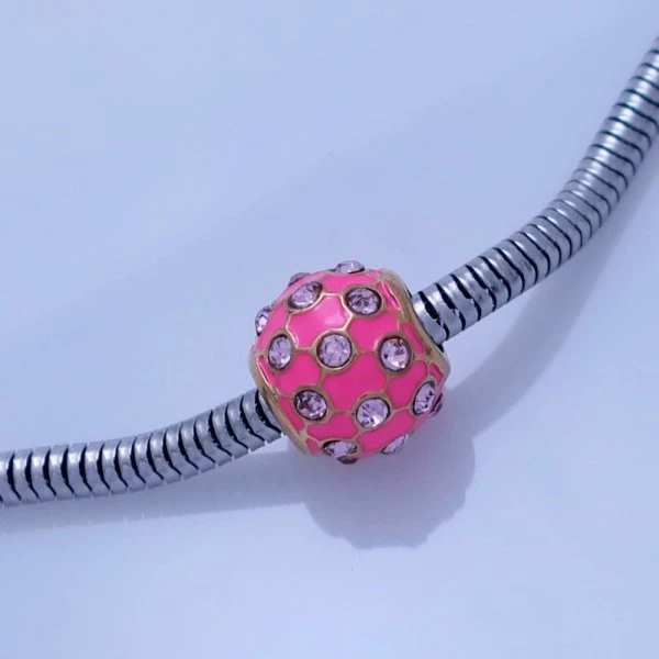 Zlacený korálek z chirurgické oceli růžový s rožovými zirkony. Šířka 10mm Vnitřní průměr průvleku 4mm. K052