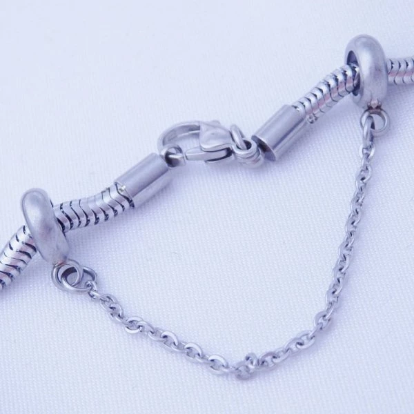 Zajišťovací korálky z leštěné chirurgické oceli, zabrání vypadnutí ostatních korálků a přívěsků z náramku. Vnitřek korálků je opatřen gumičkou a jsou vhodné na náramek o šířce - 3mm