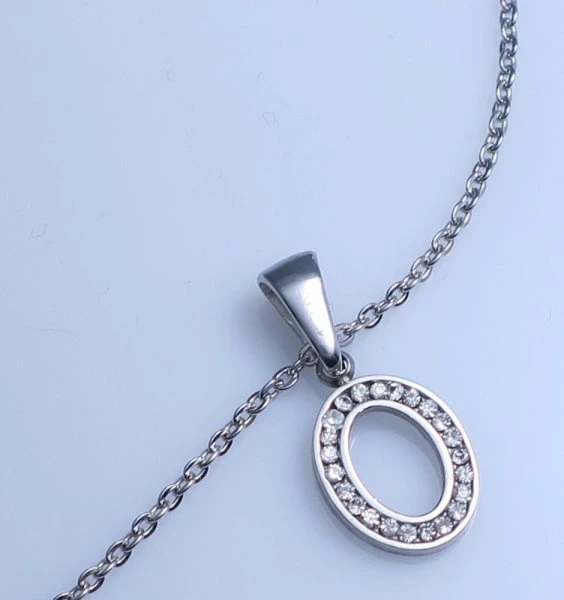 Přívěsek z leštěné chirurgické oceli oválek, je po celém obvodu zdoben čirými zirkony. Velikost : 12x9mm Přívěsek je zavěšen na řetízku z chirurgické oceli o šířce2mm. Délka na výběr od 40-45-50-55-60-65-70cm Chirurgická ocel je vhodná pro alergiky na běžné kovy. 389