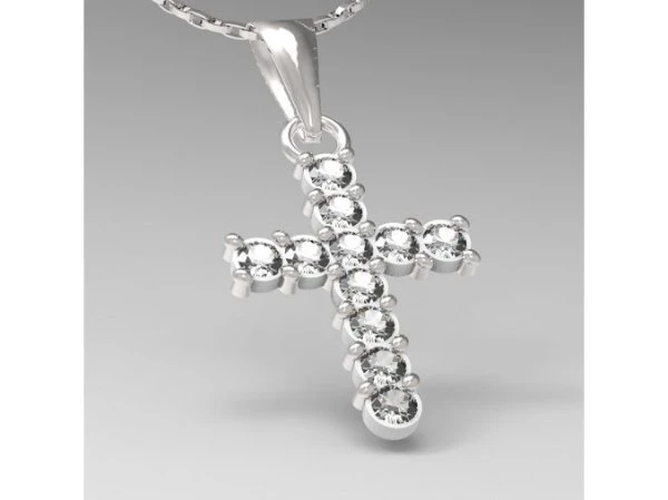 Nádherný křížek posetý blyštivými zirkony. Velmi elegantní, něžný a přesto výrazný. Rozměr: 15 x 10 mm Hmotnost: 0,94 g Materiál stříbro o ryzosti 925. Vyrobeno ručně v ČR.
