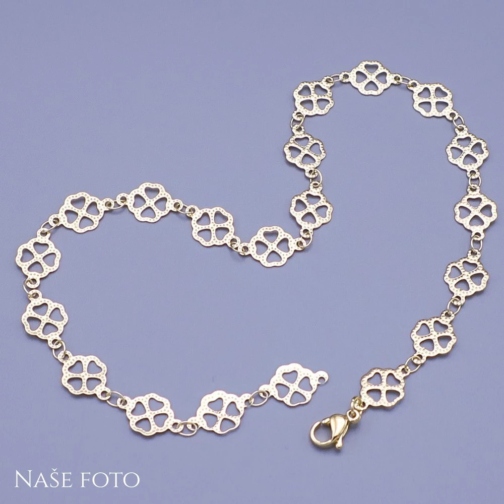 Zlacený náramek na kotník z chirurgické oceli - čtyřlístky 8mm