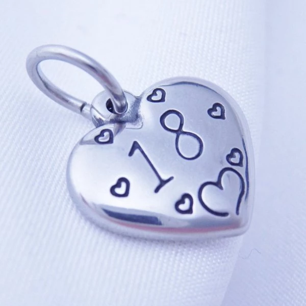 Přívěsek z leštěné chirurgické oceli srdíčko je z obou stran zdobeno gravírováním číslem 18 . Pro 18leté slečny pěkný dáreček :) Srdíčko je zavěšeno na řetízku z chirurgické oceli o šířce 2mm. Délka na výběr od 40-45-50-55-60cm Chirurgická ocel je vhodná pro alergiky na běžné kovy . P016