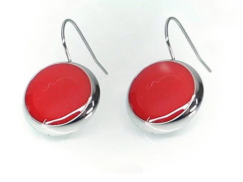 Krásné letní náušnice z chirurgické oceli. Zdobeny červenou výplní. MATERIÁL Chirurgická ocel 316L BARVA Stříbrná ZAPÍNÁNÍ NÁUŠNICE Háček ROZMĚR 2 x 1,4 cm