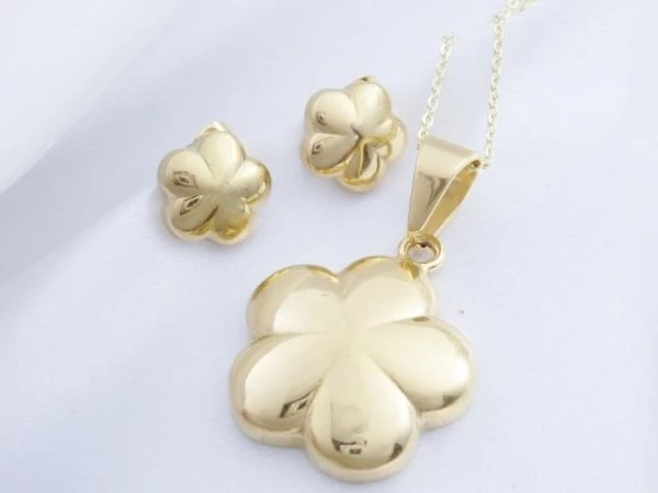Souprava z chirurgické oceli zlacené kytičky s řetízkem