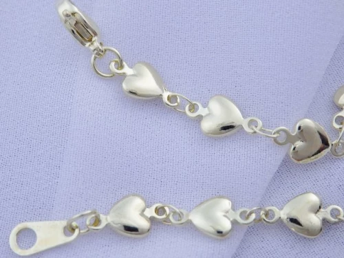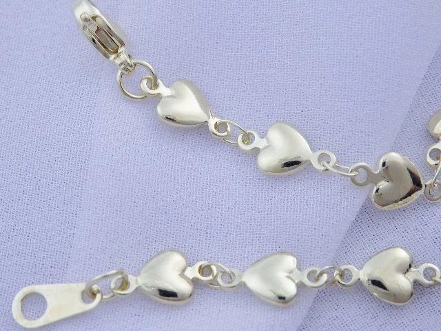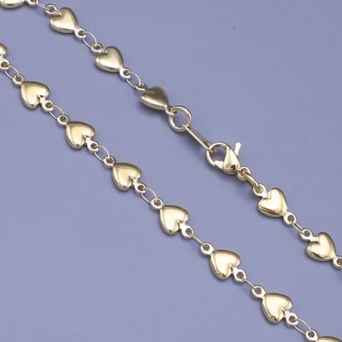 Dámský náramek z chirurgické oceli složený ze srdíček je povrchově upravený zlacením 14Kar.Síla zlacení 3mikrony. Zlacení je opatřeno lakem ,který jej chrání a prodlužuje krásný lesklý vzhled Šířka : 5mm Délka : Na výběr z variant : 17,18,19,20 cm NA09