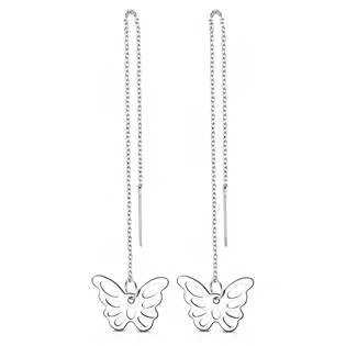 Ocelové provlékací náušnice se zavěšenými motýlky Náušnice z chirurgické oceli 316L Parametry materiál chirurgická ocel povrchová úprava lesklá typ uzávěru provlékací délka náušnic 13 cm
