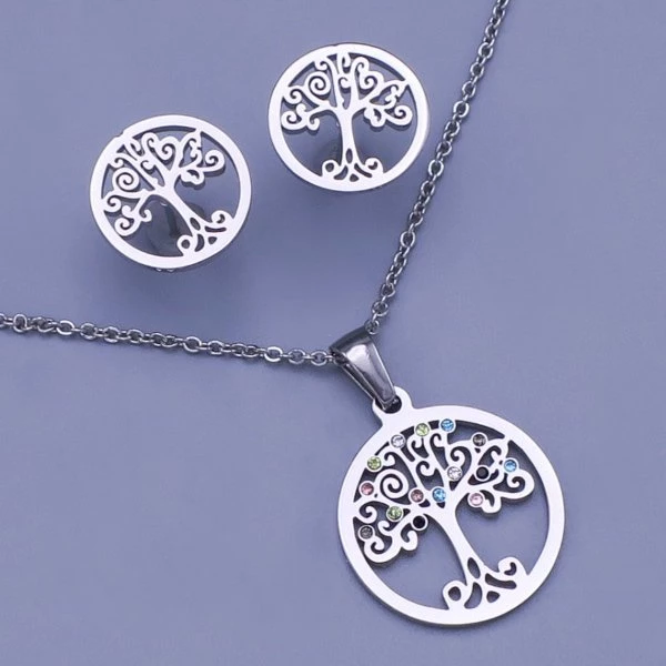 Souprava z chirurgické oceli stromy života s barevnými zirkony