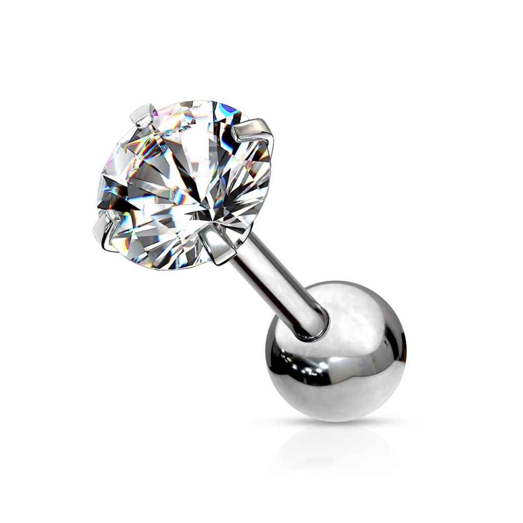 Cartilage piercing do ucha zdobený čirým kamenem kulatého tvaru