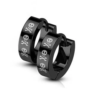 Ocelové náušnice kroužky dekorovné motivem lebky