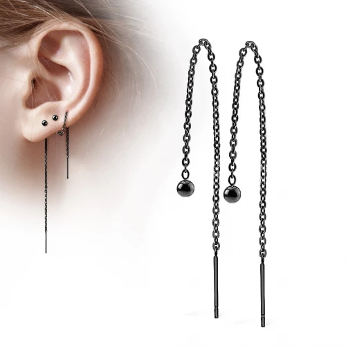 Černé ocelové náušnice řetízkové