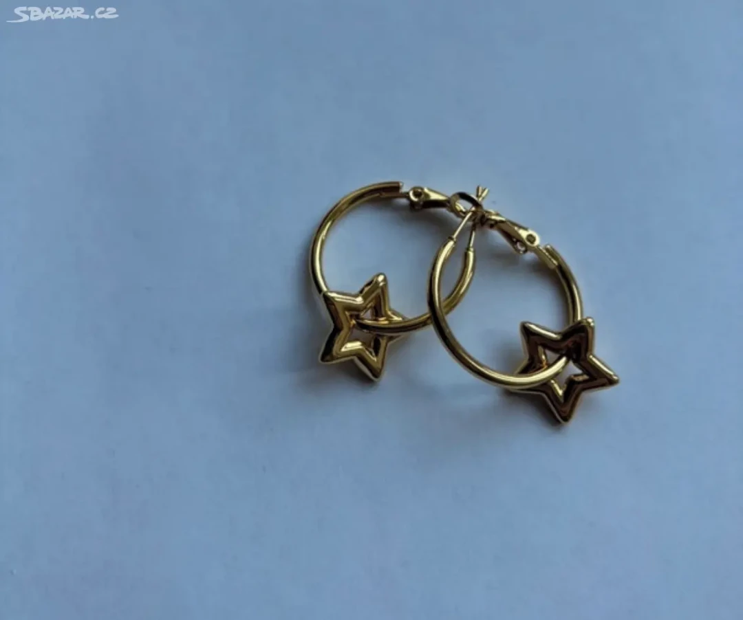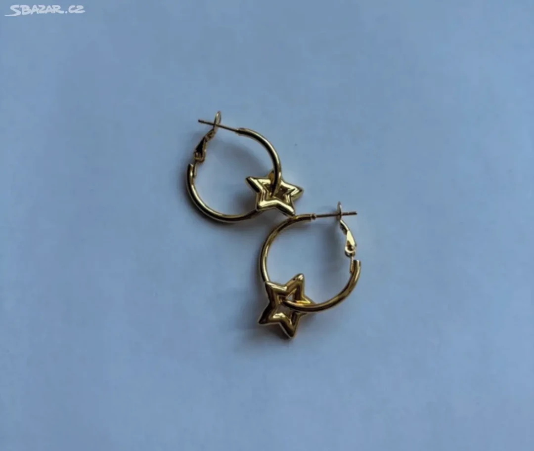 Elegantni dámské hvězdné zlacené náušnice zavěšené na kroužku