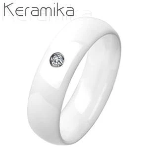 Prsten z bílé keramiky dekorovaný zirkonem čiré barvy