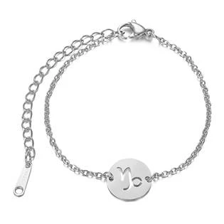 Ocelový náramek s kulatým symbolem znamení horoskopu - kozoroh