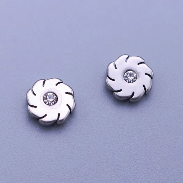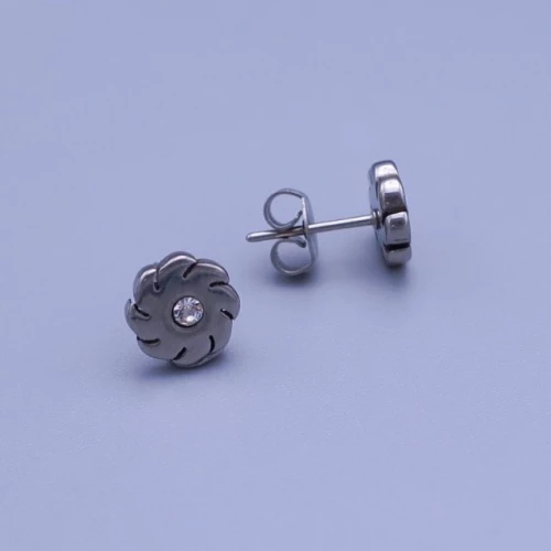 Náušnice z leštěné chirurgické oceli kytičky jsou zdobené čirým zirkonem. velikost 8mm Zapínání na puzetu. Chirurgická ocel je vhodná pro alergiky na běžné kovy. 1351