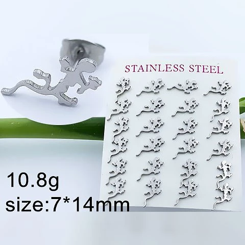 Náušnice ve tvaru ještěrky z chirurgické oceli Délka14mm,šířka 4mm Vhodné i o třetí dírky v uchu Cena za jeden pár 3NE42544