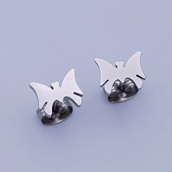 Jemné náušnice z leštěné chirurgické oceli motýlci. Velikost 8x6mm Zapínání na puzetu. Chirurgická ocel je vhodná pro alergiky na běžné kovy. 1258