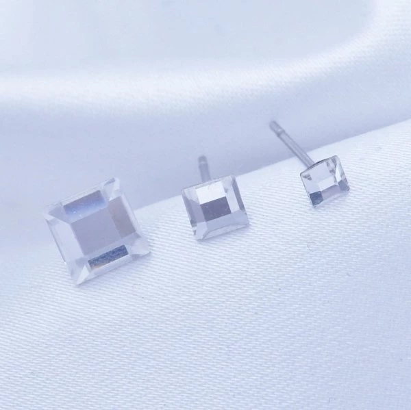 Náušnice Swarovski čtverečky v čiré barvě jsou uchyceny na zapínání z chirurgické oceli na puzetu . Velikost na výběr : 3mm , 4mm , 6mm Chirurgická ocel je vhodná pro alergiky na běžné kovy . V případě zájmu upřesněte velikost náušniček,cena je stejná pro všechny 518