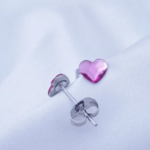Swarovski srdíčka jsou uchycena na zapínání z chirurgické oceli na puzetu . Velikost : 6mm Výběr barev : Crystal ( čirá ) , Fuchsia ( růžová ), Denim blue ( modrá ) . Náušnice jsou vhodné pro děti od 6 let . Chirurgická ocel je vhodná pro alergiky na běžné kovy . V případě zájmu upřesněte barvu 067