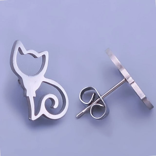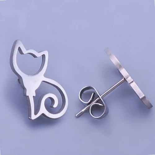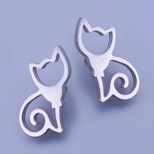 Náušnice z leštěné chirurgické oceli kočičky. Velikost kočky 10x5mm Zapínání je pohodlné na puzetu. 543