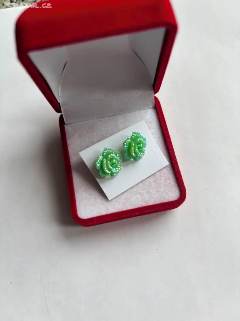 Náušnice ve tvaru růžiček v zelené barvě